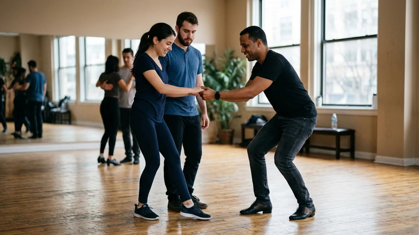 A good beginner teacher breaks the dance into small pieces and builds them methodically. Basic step first, without music. Then with music. Then with a partner. Then add direction changes. Then the first turn. Each layer gets time to settle before the next one.